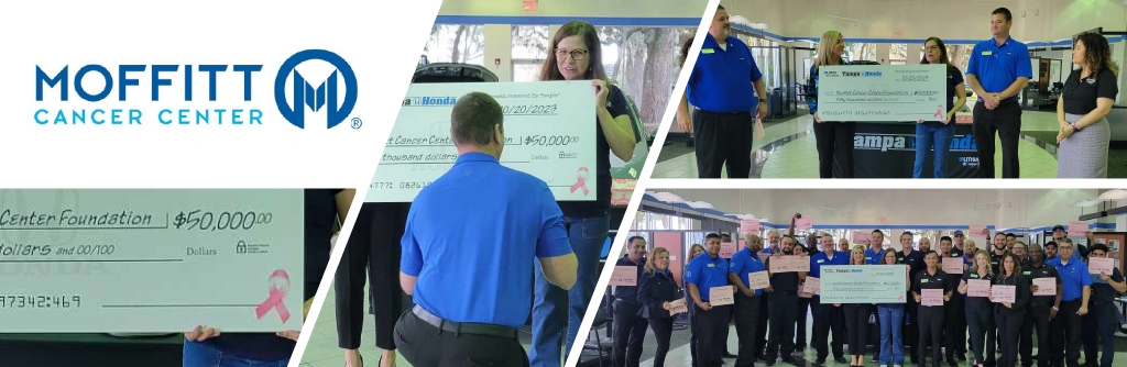 For the past 9 years, a portion of the proceeds of every vehicle sold has been donated to the Moffitt Cancer Center. We celebrate our partnership in the month of October with a check presentation ceremony. This donation has reached a total of $670,000 and we have pledged to donate 1 million to Moffitt. Come help support our Drive to a Million!